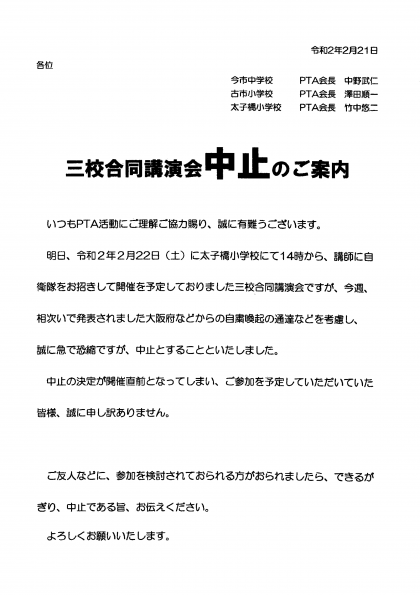 三校合同講演会中止のご案内