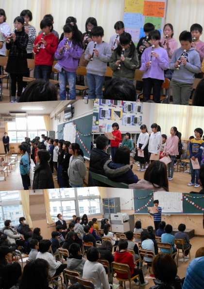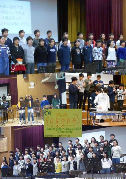 1年生から6年生までそれぞれの学年で、思い出に残っている曲を歌や合奏で表現しました。