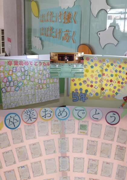 校内の掲示は、卒業をお祝いするメッセージでいっぱいです。