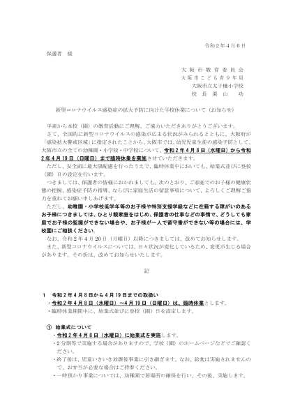 『新型コロナウイルス感染症の拡大予防に向けた学校休業について(お知らせ)』