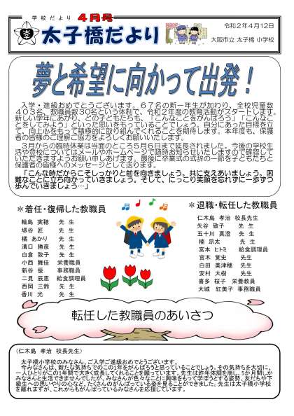 『退職・転任した教職員のあいさつ』『新年度の教職員配置』を掲載しています。
