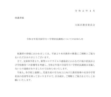 『令和2年度全国学力・学習状況調査についてのお知らせ』