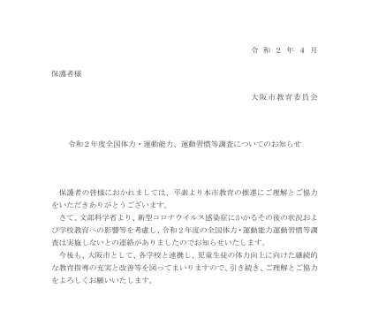 『令和2年度全国体力・運動能力、運動習慣等調査についてのお知らせ』
