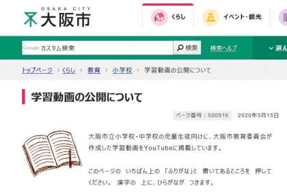 大阪市ホームページ「学習動画の公開について」≪全動画≫