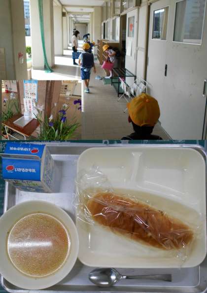 今日の献立は『おさつパン』・『牛乳』・『スープ』でした。