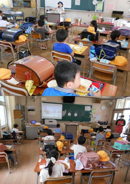 登校をしてきた子どもたちは、玄関で元気にあいさつをしていました‼