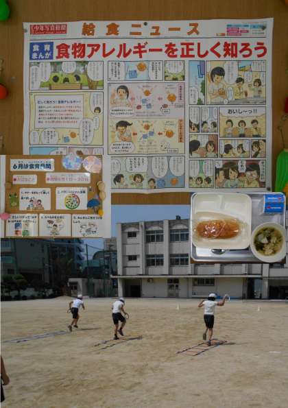 本校では現在、給食指導中に栄養職員が各学級へ行って指導をしたり、校内に掲示物を貼ったりして推進しています。
