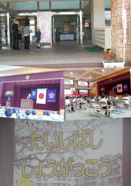 校歌紹介の場面では、太子橋小学校の1年間の主な行事とともに上級生が校歌を歌っているビデオを興味津々の顔でみていました。