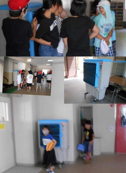 そこで、大型の気化式冷風機を倉庫から出して、設置しました。