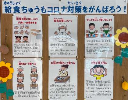食育掲示板にも、感染予防のためのポスターを掲示しています。