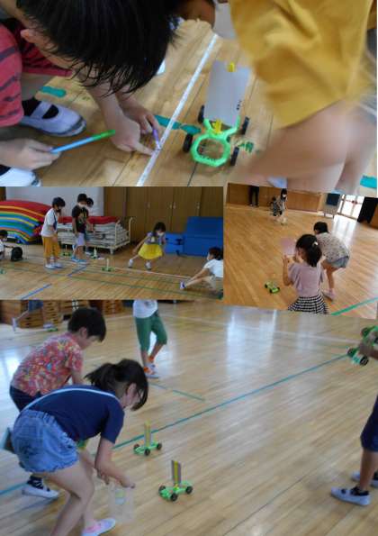 今度は、ゴムの力で車を動かす実験をするそうです。