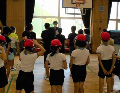 応援団長や副団長、旗もちなどの役割を決めていました。