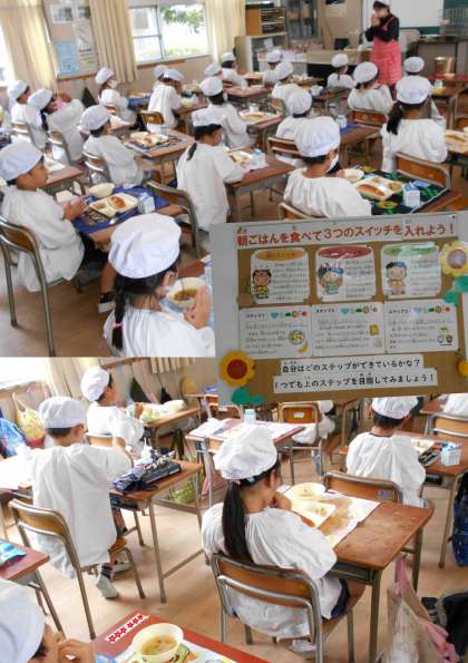 1年生の児童も上手に盛り付け、配膳することができていました。