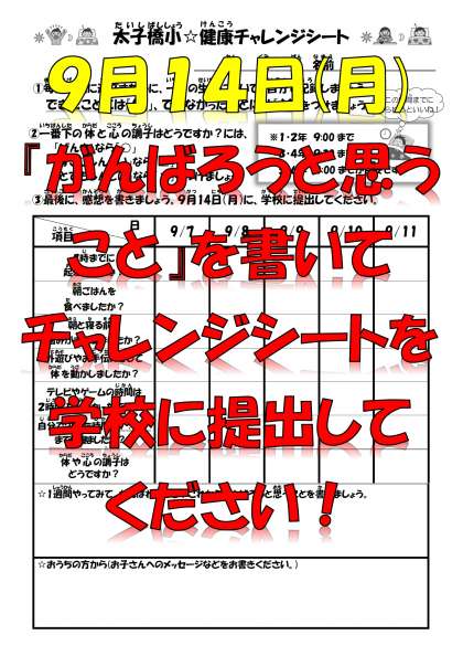 14日(月)に健康チャレンジシートの提出をお願いします!