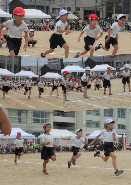 1・2年生の徒競走は、『よう どん!』と『50(ゴー)!50(ゴー)!2年生』でした。