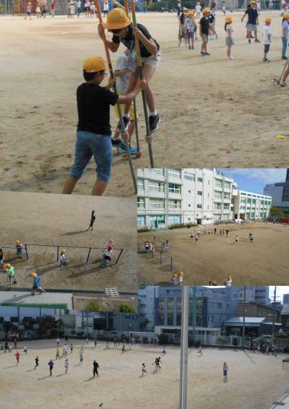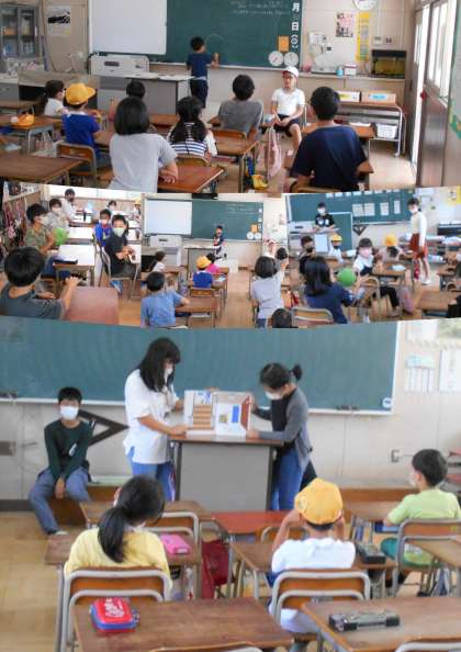 今年度は、密を避けるために運動場と講堂、そして教室に分かれて活動が行われました。