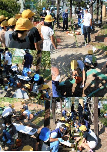 旭区役所の方や地域の緑化リーダー、ボランティアの方々にご指導いただき、飼育栽培委員会の児童が取り組みました。