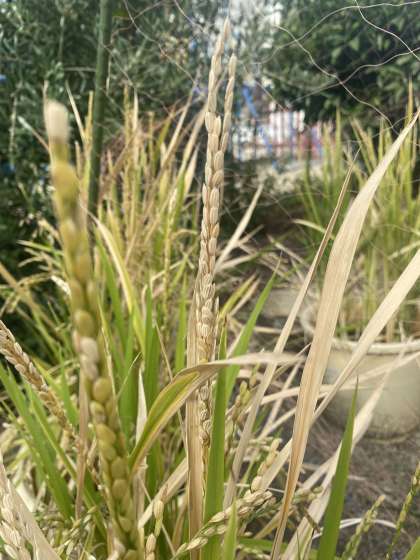 収穫前の稲を少し分けてもらい、全校児童に見てもらえるように掲示しました。