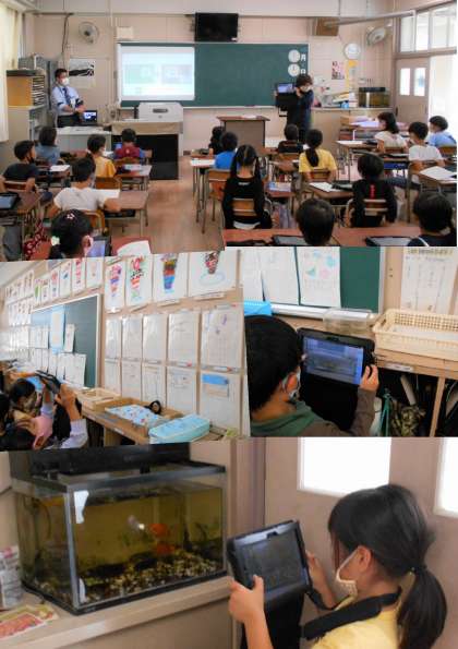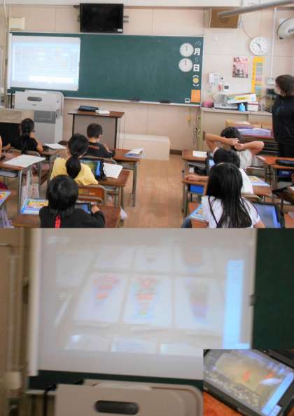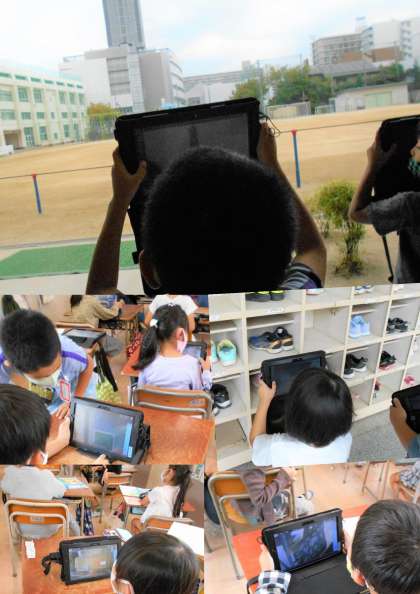 1年生がタブレットを使った勉強をしていました。