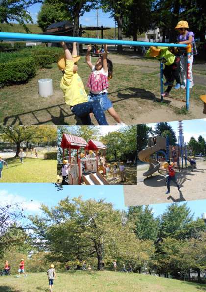 中公園には遊具がたくさんあり、いろんな遊具で遊んだり鬼ごっこをしたりしました。