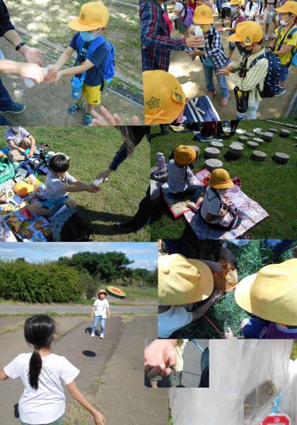 たくさん遊んだ後やお弁当の前には、きちんと手の消毒も行いました。