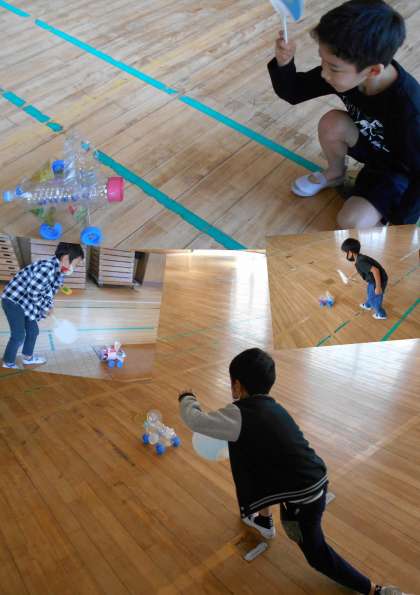 2年生がつくっていたのは、風の力で動くおもちゃでした。