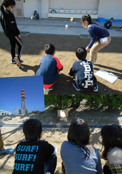 3年生がかがみを使って太陽の光について、いろいろと調べていました。