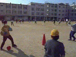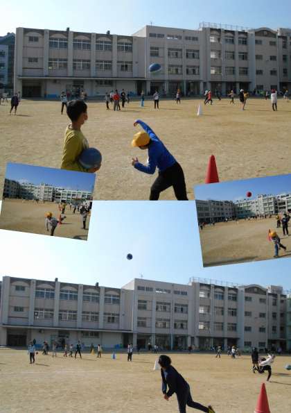 運動委員会が計画した『体力アップ活動<ボール投げ>』の様子です!
