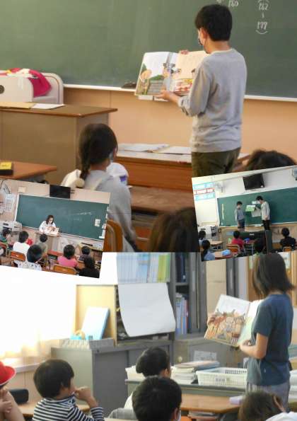 6年生のリーダーたちは、みんなが聞き取りやすいように小さなグループで読み聞かせをする工夫をしていました!