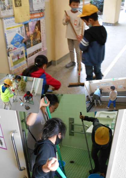 昼休みの後には、みんなが心を込めて隅々まできれいに掃除をしています。