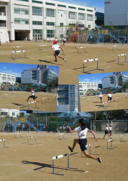 5年生が運動場で『ハードル走』をしていました。