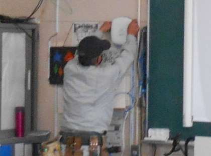 本日、太子橋小学校の各教室に『無線アクセスポイント』が設置されます。