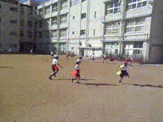最後の人はボールを持って向こうのコーンまで走ってきて、次に人へつないでいました。