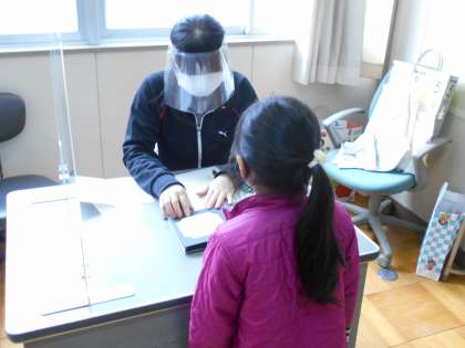 養護教諭が、一人ひとりていねいにチェックしていました‼