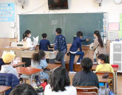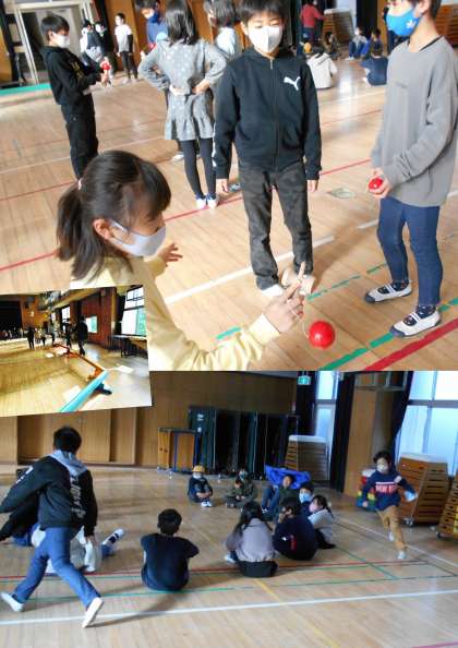 子どもたちは、たてわり班(にこにこ班)で低学年と高学年とが仲よく遊んでいました。