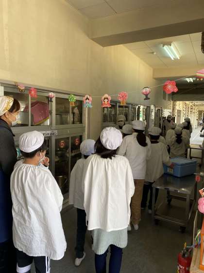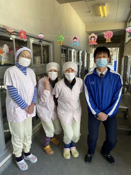 給食調理員さんたちの工夫で、子どもたちはひな祭りの楽しい雰囲気を味わうことができました!