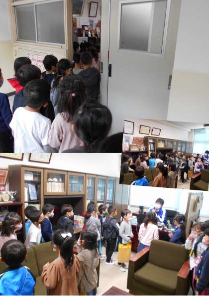 子どもたちは、校長室に飾ってある優勝楯やトロフィー、賞状などを見て、『うわぁ〜!すご〜い‼』と言って歓声をあげていました!