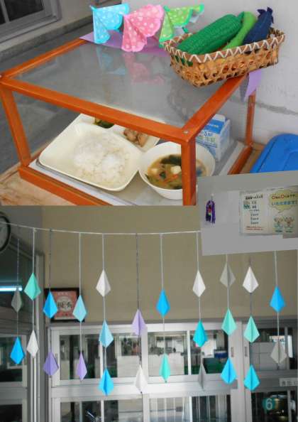 6月の給食室ディスプレイは、『あめふり』バージョンでした!
