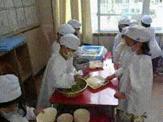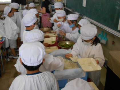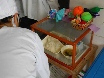 1年生の教室をのぞいてみると、配膳がとても上手だったので驚きました!