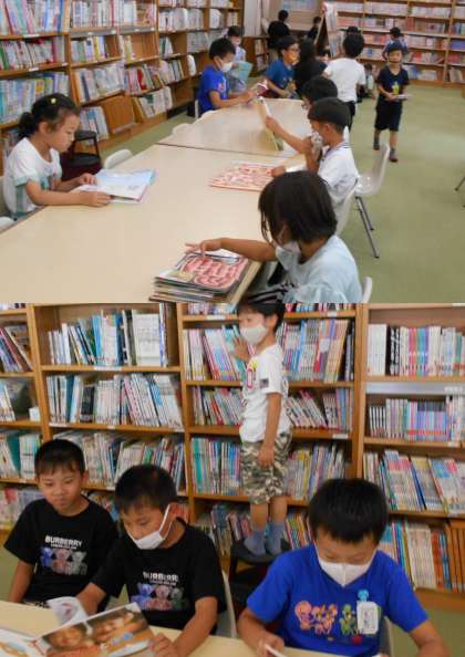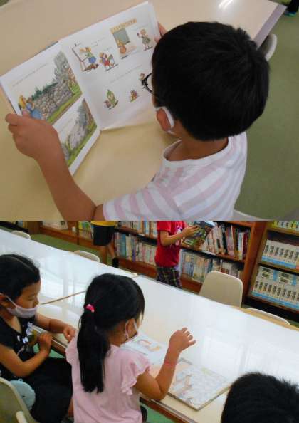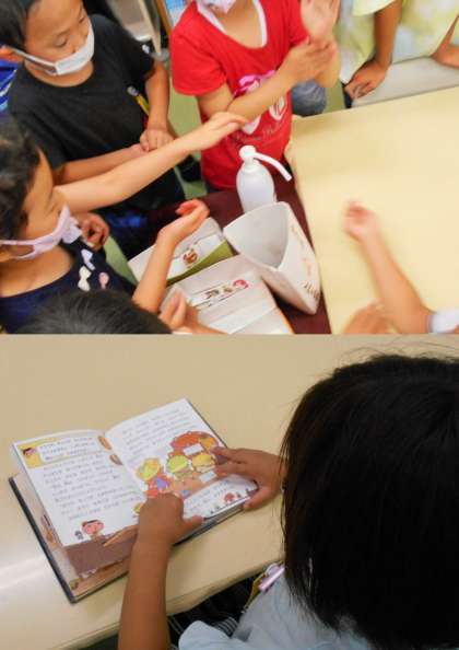 本を読む前にはきちんと手を消毒し、思い思いに興味のある本を選んで読んでいました!