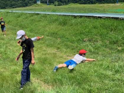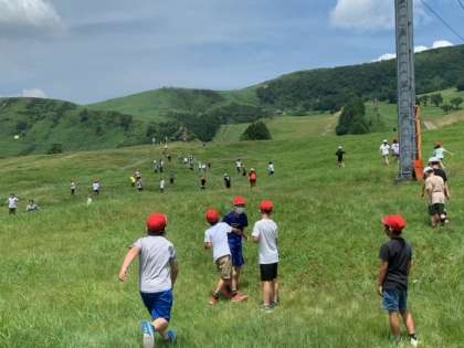 お昼まで少し時間があったので高原遊びをしました。転がったり虫をとったりして楽しんでいます。
