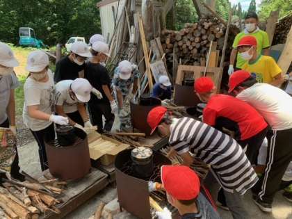 初めてですが、火起こしも調理も上手にこなすことができています。出来上がりが楽しみです。