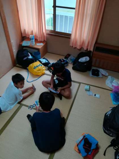 お風呂がはじまりました。待っている班は部屋で静かに過ごしています。