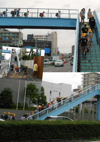高学年の子どもたちは、低学年のことを気遣いながら歩いていました。