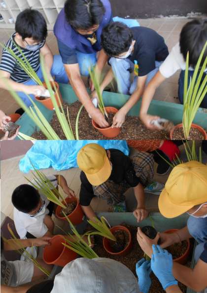 区役所や地域の方々に『植え替え』のやり方を指導していただきました。
