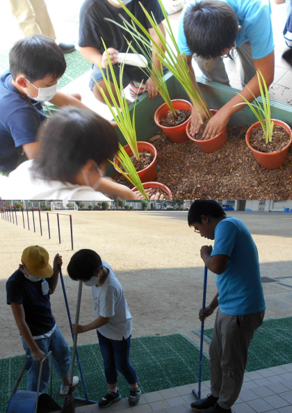 飼育・栽培委員会の子どもたちがお手伝いをしました。