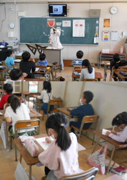 コロナ禍なので『染め出し液』を使ったり、実際の歯ブラシで歯みがきの仕方を指導したりしていただくことはできませんでした。
