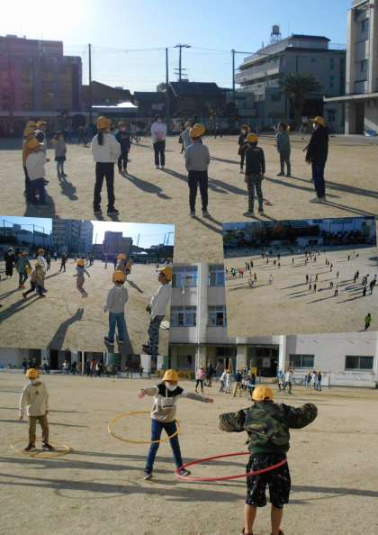 『運動場』・『講堂』・『教室』の3か所をローテーションで回ります。