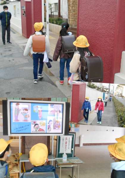 朝のすがすがしい空気の中、近所の友だちや兄弟たちが仲よく一緒に登校してきました。