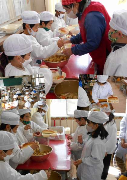 給食調理員さんたちが、いつも楽しい雰囲気をつくってくださっています。